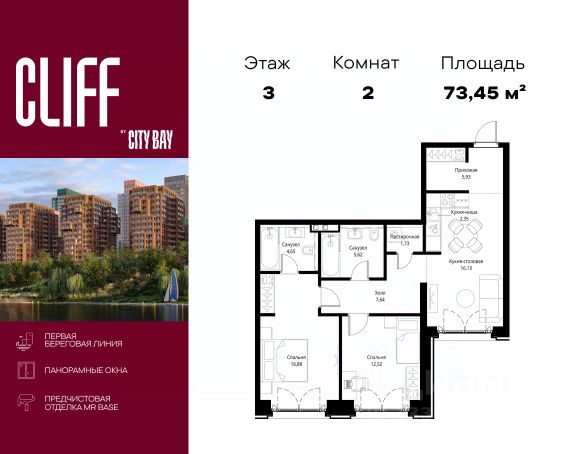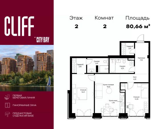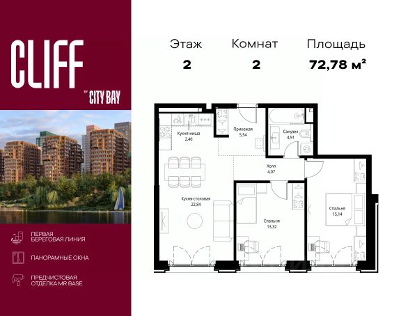 Прямая продажа от застройщика. Продаётся 2-комнатная квартира общей площадью 67.90 м² с предчистовой отделкой в ЖК City Вау, квартале Cliff, на 2-м этаже 15 этажного дома. Cliff by City Вау - это пять клубных домов на первой линии озелененной набережной Реки Москвы. Со стороны южного фасада, обращенного к воде, находится прогулочная зона, организующая входы в жилые секции. Вдоль северного фасада пятой очереди проходит общеквартальный озелененный бульвар с тематическими зонами и дворовыми территориями. В каждой секции предусмотрены сквозные входные группы, а между секциями - проходы для пешеходов, связывающие набережную и бульвар с местами для отдыха внутри квартала. Данное решение позволяет сделать комплекс с доступной и безбарьерной городской средой. Со стороны бульвара у каждой башни для жильцов комплекса расположены приватные потайные дворики, огороженные живой изгородью и интегрированные в общий ландшафт бульвара. Из-за перепадов высот по рельефу, уровень бульвара возвышается относительно уровня дворов, что делает их еще более камерными. Доступ на территорию со стороны бульвара осуществляется через калитку. В каждом здании комбинируется максимальное количество и разнообразие форматов квартир: от видовых квартир с зелеными террасами и лоджиями до квартир малого формата. Входные группы 1-ых этажей поистине уникальные пространства. Лобби имеют высоту потолков 5 - 6 м и панорамные окна. В отделке используются дорогие натуральные материалы:шпон дерева, мрамор, металл и др. Одноуровневый паркинг с дополнительными функциями: - Велопарковка, - Места для подкачки шин, - Зоны погрузки и разгрузки, - Зарядки для электрокаров, - Кладовыми помещениями. Концепция жилого комплекса City Вау - настоящий город в городе с отлично развитой инфраструктурой и собственной благоустроенной набережной. На территории жилого комплекса расположено пять кварталов - Atlantic, Pacific, Indian, North, Cliff. Жилой квартал City Вау отличается оригинальной концепцией и выделяется среди других проектов такими характеристиками как: - Архитектура, - Виды из окон, - Природное окружение, вызывая гордость у жителей и восхищение у прохожих. Вся жизнь района Покровское-Стрешнево строится вокруг водных объектов: - Пойма реки Сходни с уникальной экосистемой, - Речка Химка и Химкинское водохранилище, - Москва-река, - Канал имени Москвы. Кругом вода, и местные с удовольствием этим пользуются. А сразу за рекой - центр водного спорта в Строгино с вейк-парком и яхт-клубами. Помимо воды, здесь очень много зелени: - Рядом Сходненский ковш памятник природы, естественный амфитеатр глубиной 40 метров; - Парк при усадьбе Братцево с фруктовым садом; - Дубовая роща "Маяк", - Алешкинский лес; - Лесопарк Покровское-Стрешнево с пляжами и бобрами. Главные транспортные артерии района: - Волоколамское шоссе, - Таганско-Краснопресненская линия метро и МЦД-2. Всего за 20 минут можно добраться до центра на машине или метро, а МЦД связывает ЖК City Вау с