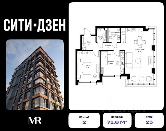Продается 2-комнатная квартира от застройщика в жилом мультиквартале СИТИДЗЕН на 7-м этаже в корпусе #1. Общая площадь лота составляет 55.60 м² В лобби корпуса #1 представлены: 1. Grand-лобби с зоной отдыха 2. Лапомойка 3. Переговорная 4. Коворкинг 5. Постаматы 6. Почта 7. Колясочная 8. Лифтовой холл 9. Санузел 10. Комната консьержа с с /у СИТИДЗЕН — это большой город в миниатюре. Инфраструктура мультиквартала организована по принципу шаговой доступности от подъезда до любой нужной точки: супермаркета, кофейни, салона красоты, фитнес-центра и др. В домах представлены лобби с атмосферой премиального резорта, дизайн которых вдохновлен французскими интерьерами 1960-х годов. Концепция благоустройства территории мультиквартала предусматривает большое количество вечнозеленых растений, что создает ощущение максимальной близости к природе. Жителей квартала ждут места для отдыха, игр, занятий спортом и прогулок с домашними питомцами. В приватном дворе с собственным садом предусмотрена зеленая комьюнити-гостиная для дружеского отдыха и общения, одна из стен которой подходит для кинопроекций, а также зеленый рабочий кабинет в саду (бизнес-гардена), оборудованный wi-fi станцией и usb-разъёмами для зарядки устройств. Маленьких жителей ждут авторские игровые площадки для разных возрастных групп (от 0 до 12 лет). Начало строительства - 1 квартал 2024 года. Окончание строительства - 3 квартал 2027 годаКомпания MR предлагает своим клиентам специальные условия приобретения квартир в рамках программ ипотечного кредитования от банков-партнеров.