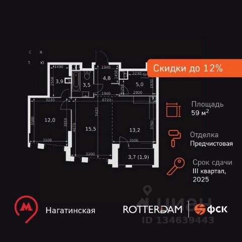 Прямая продажа от застройщика! Жилой Комплекс бизнес-класса. Продаётся 2-к квартира номер 15 общей площадью 46.4 кв.м. на 4-м этаже 29 этажного здания. Отделка Whitebox. Цена с учётом скидки. Особенности квартиры: - Мастер-зона с гардеробной. Просторное место для отдыха и удобного хранения вещей. - Линейная планировка - максимальная функциональность и удобство. - Линейная планировка - максимальная функциональность и удобство. - Увеличенное количество окон - дополнительное освещение и свежий воздух. - Постирочная - организуйте пространство для стирки и сушки вещей. - Гардеробная - удобство для хранения и организации вещей. - Ниша под шкаф - компактное и удобное место для вещей. - Лоджия - уютное место для отдыха и тишины. Квартира с предчистовой отделкой (White box). Вам не придется заниматься черновыми и трудоёмкими работы, а чистовую отделку и дизайн - сделайте на свой вкус. Информация о комплексе: В ЖК Роттердам отличное расположение, которое позволит вам выбирать свой сегодняшняшний маршрут и транспорт исходя из настроения, целей и погоды. Отсюда удобно добираться в центр как на метро станция находится в пешей доступности, так и на автомобиле. Варшавское шоссе связывает жилой комплекс с ТТК, а через Люсиновскую и Мытную улицы с Садовым кольцом. В качестве альтернативного маршрута можно использовать Нагатинскую набережную: дорога вдоль Москва-реки приведет к Кремлю и Павелецкому вокзалу. Для неспешной поездки предусмотрены трамвайные маршруты, а в теплое время года веломаршруты вдоль реки. Транспортная доступность: Всего в 5 минутах пешком до метро Нагатинская и 8 минутах от МЦК Верхние Котлы. Рядом Аэроэкспресс до метро Домодево. До ТТК 2,2 км и 4,9 км до Садового кольца. Внутренняя инфраструктура: Если вы ищете идеальный баланс между отдыхом и работой и обладаете активной жизненной позицией - ЖК Роттердам вам понравится. В ЖК: зоны коворкинга, плейхаб и детские площадки для отдыха всей семьей. Близость к деловому центру Москвы, в окружении 5 парков, рядом спортивные и развлекательные центры Если вы любите живописные виды и долгие прогулки - ЖК Роттердам - отличный вариант для вас, так как он расположен прямо на Нагатинской набережной с выходом на Москву реку! В ЖК Роттердам соблюден баланс между высоткой и малоэтатажным зданием, которое не потеряло ощущение уюта и не создает впечатление городских джунглей Если вы любите быть на высоте и без ограничений - выбирайте верхние этажи Для тех, кто ценит комфорт и собственное время Для тех, кто ценит комфорт и личное пространство Для тех, кому важен комфорт, безопасность и личное пространство на предомовой территории Продается 2-комнатная квартира в ипотеку станция Верхние котлы (МЦК).