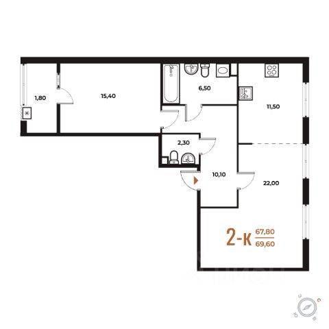 Продаётся 2-комнатная квартира в строящемся доме (Корпус 1), срок сдачи: I-кв. 2026, общей площадью 69.6 кв.м., на 2 этаже. Комплекс отдельно стоящих жилых корпусов с нежилыми помещениями и подземной автостоянкой.