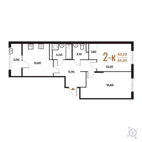Продаётся 2-комнатная квартира в строящемся доме (Корпус 1), срок сдачи: I-кв. 2026, общей площадью 65.2 кв.м., на 4 этаже. Комплекс отдельно стоящих жилых корпусов с нежилыми помещениями и подземной автостоянкой.