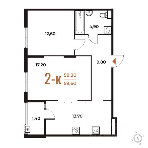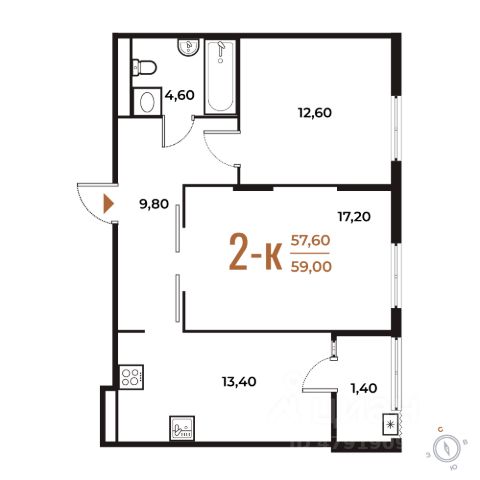 Продаётся 2-комнатная квартира в строящемся доме (Корпус 1), срок сдачи: I-кв. 2026, общей площадью 58.4 кв.м., на 3 этаже. Комплекс отдельно стоящих жилых корпусов с нежилыми помещениями и подземной автостоянкой.