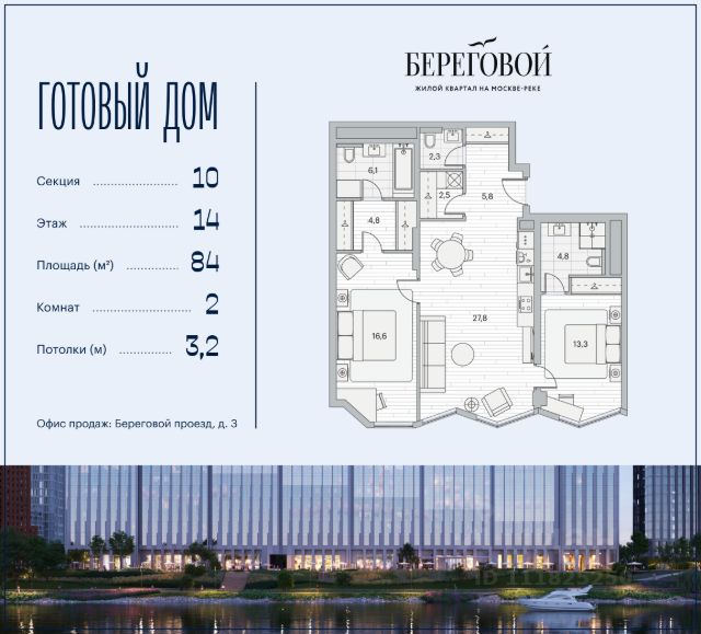 Река. Парк. Сити. Готовый дом в идеальном месте. Продается 2-комнатная квартира на 7 этаже с панорамным остеклением и видом на Береговой пр-д. Береговой — квартал-курорт в центре столицы. Готовый дом на первой линии Москвы-реки. Пешеходная набережная начинается прямо от дома — никаких дорог между вами и рекой. Уникальное сочетание природы парка Фили и ритма Сити. Ключи от нового образа жизни в Береговом: • 12 террас на крышах — ваши виды на Москву с высоты птичьего полета • Пешеходная набережная прямо у дома — ни одной машины между вами и рекой • Лобби с камином, переговорной и консьерж-сервисом • Флагманский Encore Fitness — самый большой в сети (4700 м²) с бассейном, термами и спа-комплексом • Детство на берегу Москвы-реки — в рамках проекта будут построены две школы и детский сад рядом с домом • Гастрономическая набережная: рестораны и премиум-сервисы откроются на первых этажах • Причал "Береговой" рядом с домом — путешествуйте по городу, пока другие стоят в пробках • Безопасность и уединение: контроль доступа на территорию, видеонаблюдение и круглосуточная диспетчерская • Двухуровневый подземный паркинг и кладовые Безупречная квартира для жизни: • Пространство света и воздуха: панорамные окна и высокие потолки 3.2 м • Технологии: центральное кондиционирование и роботизированная система очистки фасадов — вид из окна всегда будет идеальным • Совершенство планировки: просторная кухня-гостиная, минимум коридоров, максимум полезной площади • Квартира без отделки — возможность раскрыть преимущества планировки в вашем уникальном интерьере. Или выбирайте свою версию идеального дома в коллекции планировок: • С изолированными спальнями • Мастер-спальнями с гардеробными и ванными • Видовые ванные комнаты • Функциональные постирочные Эксклюзивные лоты: • Пентахусы с приватными террасами • Двухуровневые пентхаусы Локация, о которой мечтают 15 минут до Сити на машине — и вы в эпицентре деловой жизни. Две станции метро в пешей доступности — когда каждая минута на счету. Утром — пробежка по парку Фили, вечером — прогулка на велосипеде вдоль реки, выходные — водный спорт в Крылатском. Речные трамвайчики вместо такси, зеленые парки и благоприятная экология — привилегии престижного ЗАО Москвы. Условия покупки: выгодные программы покупки от застройщика, специальные условия при полной оплате. Оставляйте заявку на персональную презентацию в шоу-руме.