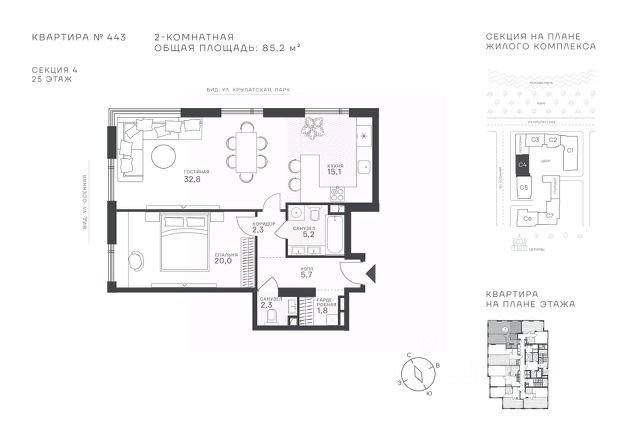 Успейте стать частью уникального проекта премиум-класса на западе Москвы! В продаже квартиры: 1-комнатные от 28,1 м²; 2-комнатные от 61,2 м²; 3-комнатные от 86,6 м²; 4-комнатные от 110,7 м². Первый взнос от 30%! Рассрочка на 2 года без переплат! Крылатское 33 это премиальный жилой комплекс от специализированного застройщика ООО "Сияние". Самый высокий небоскрёб в районе, достигающий отметки в 150 метров и малоэтажный клубный формат высотой от 42 метров на приватной территории площадью 1,4 га. Великолепные виды на излучину Москва-реки, Живописный мост и урбанистический облик города. Эксклюзивные форматы квартир с панорамным остеклением и патио-террасами. Двухуровневый паркинг на 271м/м, премиальные входные группы, ресторан высокой кухни, детский сад и эко-маркет на территории комплекса. Эксклюзивные преимущества: доступ к wellness-центру, коворкингу и клубной гостиной только для резидентов. Над проектом работали именитые российские архитектурные бюро: архитектор проекта бюро "Остоженка", планировочные решения от бюро Александры Федоровой. Расположение Пешком: 5-7 минут - до парка Звезд, Крылатского парка и набережной Москвы-реки; 15 минут - до метро Крылатское Арбатско-Покровской линии; 15 минут - до пристани Крылатская. На автомобиле: 10 минут - до Третьего транспортного кольца; 15 минут - до Садового кольца и Москва- Сити; 20-30 минут - до Аэропорта Внуково; 30-40 минут - до Аэропорта Шереметьево. В 300 метрах от комплекса - удобная транспортная развязка с проспектом Маршала Жукова, обеспечивающая легкий доступ к ключевым магистралям. Благоустройство: Просторная общественная гостиная; Коворкинг с кофе-баром, комфортные переговорные зоны с быстрым wi-fi, зарядными устройствами и библиотекой; Пространство friends lab для организации клубных мероприятий; Wellness-центр с фитнес-залом и массажными кабинетами; Ресторан высокой кухни; Частный детский сад; Детское кафе; Современный детский playhub; Спортивные площадки; Гипоаллергенный сад, безопасные водные пространства, декоративные пруды и сухие фонтаны; Высокоскоростные бесшумные лифты; Разделение зон для резидентов квартала и сервисного обслуживания. Окружение: - парки: Крылатские холмы, природно-исторический парк Москворецкий, Серебряный Бор; - учебные заведения: 5 образовательных комплексов, в которые входят 15 детских садов и 12 школьных корпусов. В удобной транспортной доступности гимназия им. Е. М. Примакова и международный лицей The International School of Moscow; - уникальные спортивные сооружения: гребной канал "Крылатское", легендарный велотрек "Крылатское", "Лата Трэк" для горнолыжников и сноубордистов, ледовый дворец "Крылатское"; - единственный в Москве парк развлечений под открытым небом, включающий более 70 вариантов досуга для любого возраста и времени года. Срок сдачи проекта: 2 квартал 2027 года. Финансирование и эскроу-счет обеспечены банком МКБ.