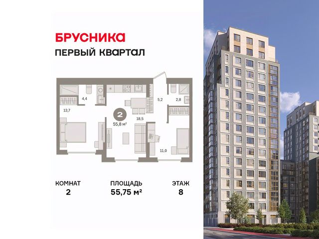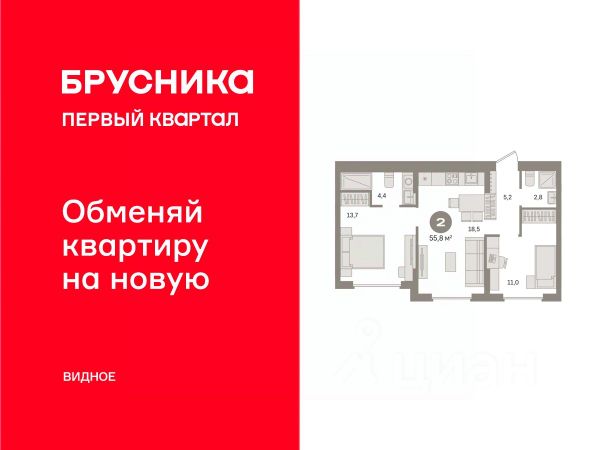 Арт. 129227011 В свободной продаже шикарная 2-комнатная квартира по ул. улица Медиков, 14к2.
