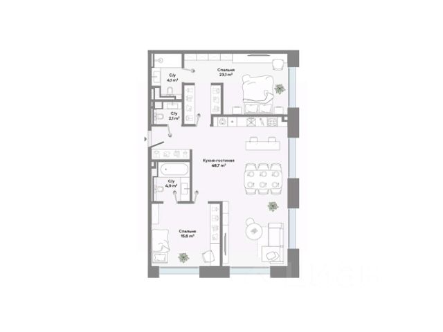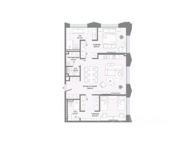 В продаже стильная 2-х комнатная квартира площадью 74 м² в ЖК Английский квартал