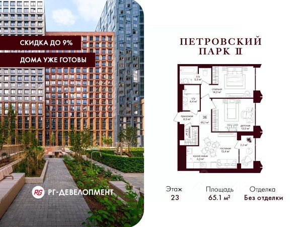 Продаётся 2-комнатная квартира 67,3 кв.м. в ЖК "Петровский парк II" на 2-м этаже 21 этажного дома. Скидка 9% при покупке квартиры! Цена указана с учетом максимального размера скидки. Компания "РГ-Девелопмент" предоставляет скидки на квартиры в жилом комплексе. Акция действительна с 01.11.2025г. до 30.11.2025г. включительно. Для того чтобы воспользоваться предложением, необходимо подписать договор на приобретение недвижимости до 30.11.2025г., включительно. ЖК "Петровский парк II" расположен в историческом районе Москвы, в 5 минутах от парка и станции метро "Динамо". Архитектуру от Syntaxis характеризуют асимметричные фасады, геометрические выступы, напоминающие волны. Эстетика архитектурных форм продолжается в интерьере внутренних пространств - двух центральных лобби и входных группах. На закрытой территории зеленые зоны с цветниками, места для отдыха, спортивные и игровые площадки. Подземная парковка, близость основных магистралей и удобные выезды, которые дают возможность жителям комплекса быть в центре культурной и общественной жизни. Комфортной жизни на территории комплекса расположены магазины, рестораны, частный детский сад.