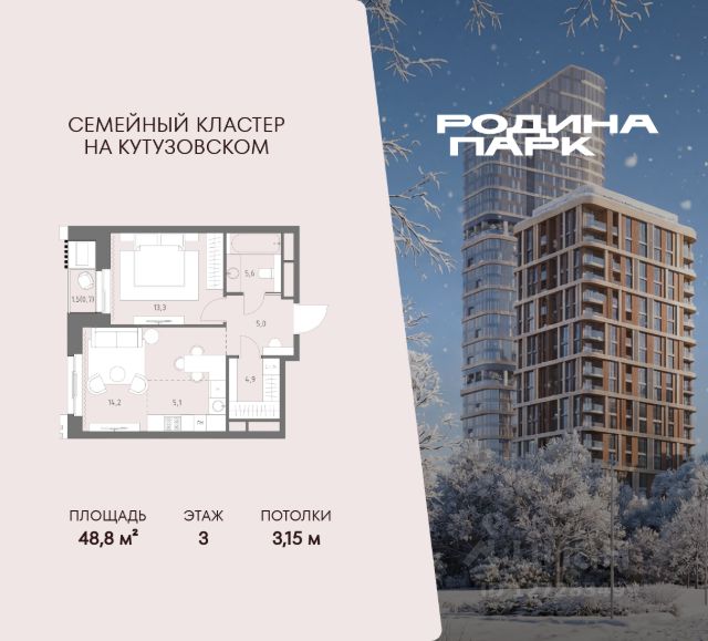 В жилом кластере Родина Парк рядом с природным заказником Долина реки Сетунь продаётся 2-комнатная квартира. Продуманная европланировка, которую легко зонировать под ваши запросы. Потолки от 3,1 м. "Родина Парк" — премиальный семейный кластер с образовательным медиакластером, строящийся на западе Москвы в окружении природного заповедника "Долина реки Сетуни". • Скидки недели на избранный пул лотов • Рассрочка 0% на выгодных условиях до 2 лет • Семейная ипотека, подбор комбо-вариантов ипотечных программ прямо в офисе продаж • Скидки 8% при 100% оплате или ипотеке. ЛОКАЦИЯ: 8 минут пешком до станции БКЛ "Давыдково". 12 минут на автомобиле до Нового Арбата. Удобные выезды на Кутузовский проспект, Аминьевское шоссе. ИНФРАСТРУКТУРА И СЕРВИСЫ ДЛЯ ЖИТЕЛЕЙ - Уникальная экосистема для развития, здоровья и творчества на территории 3,5 Га: - Первый в России образовательный медиакластер (с участием Русской медиагруппы) для творческого развития детей и взрослых с возможностью получить востребованную профессию в сфере шоу-бизнеса. - Инфраструктура и сервисы для семей с детьми на территории жилого кластера (частный детский сад, детские игровые пространства, творческие студии для занятий музыкой и танцами, безопасная и комфортная среда для детей и родителей), событийно-культурная площадка для проведения семейного досуга); - Здоровая среда (биохакинг-центр, фитнес-зал и спортивная инфраструктура во дворе, медитационные пространства, инженерные решения для освещения, свежего воздуха и очистки воды, сервисы красоты и поддержания активного долголетия); - Сервисы заботы (инфраструктура комфорта - подземный паркинг, кладовые, колясочные, консьерж- сервис, умный дом, мобильное приложение, профессиональная управляющая компания, сервисы охраны и обеспечение абсолютной безопасности) - Комьюнити резидентов (социальные пространства для дружеского и делового общения - летний атриум с уличным кинотеатром, зоны отдыха, кафе и рестораны, комьюнити-сервис с культурно- событийной программой в медиакластере); - Модуль благосостояния (комфортные пространства для работы и саморазвития - коворкинги и переговорные). ИНФРАСТРУКТУРА РАЙОНА: Насыщенная образовательная среда: филиалы МГИМО, МГУ, МГТУ, Сколково. Топовые школы: 6 лучших частных школ Москвы и области (Forbes) в 10 минутах езды. Природное окружение для пеших прогулок, спорта и отдыха. "Родина Парк" — это место, где растут и дети, и ваши возможности. Экосистема, где всё подчинено развитию — физически, профессионально, творчески.