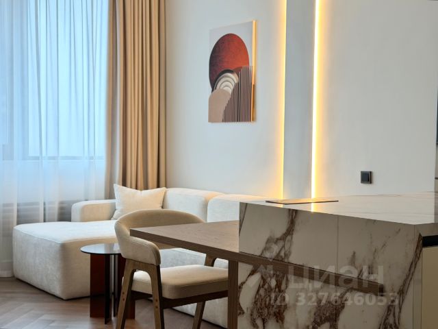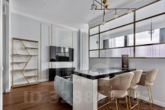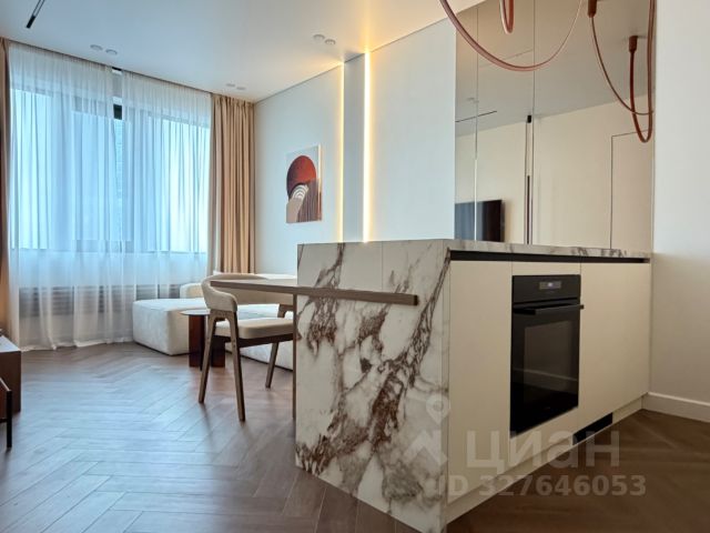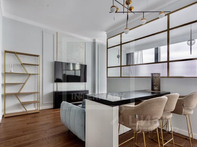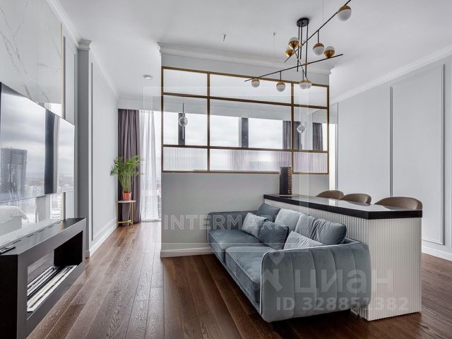 Номер лота: 575869 Стильная квартира с дизайнерским ремонтом и панорамным видом на "Москва-Сити" в жилом комплексе Headliner. Квартира расположена на 46 этаже, общая площадь — 43,2 м². Из окон открываются впечатляющие виды на деловой центр и городскую панораму. Интерьер выполнен в современном стиле в светлой цветовой гамме. В отделке использованы качественные премиальные материалы: на полу уложен ламинат "французская ёлка". В квартире выполнена дополнительная шумоизоляция, установлены скрытые потолочные и напольные плинтусы, система теплого пола, фильтры для очистки воды, а также система вентиляции и кондиционирования. Кухонный гарнитур изготовлен на заказ и полностью оборудован встроенной техникой: холодильником, духовым шкафом, варочной панелью, посудомоечная машина, винный шкаф. Планировка квартиры продумана для комфортной жизни: кухня-гостиная, отдельная спальня, совмещенный санузел и прихожая с системами хранения. Панорамные окна наполняют пространство естественным светом и открывают красивые виды на Москву и Москву-реку. О комплексе. Headliner — современный жилой квартал рядом с "Москва-Сити". Комплекс состоит из башен разной этажности с закрытыми благоустроенными дворами на стилобате. Входные группы выполнены с использованием натурального камня и мягкого освещения, в лобби оборудованы зоны ожидания и стойка ресепшн. Для жителей предусмотрены кладовые помещения и подземный паркинг с прямым доступом в корпуса. О районе. Район Шелепихи активно развивается и считается одной из самых удобных локаций рядом с центром Москвы. В пешей доступности — деловой центр "Москва-Сити", набережная Москвы-реки, кафе, магазины и фитнес-клубы. Рядом находятся школы, детские сады и зеленые зоны для прогулок, включая парки Красная Пресня и Декабрьского восстания. Номер объекта: #1/575869/23309