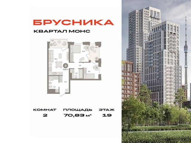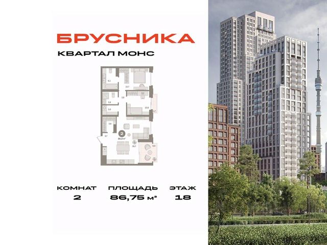 Квартира с кухней-гостиной и двумя спальнями в квартале "МОНС". Особенности планировки: второй санузел, тёплая лоджия, предчистовая отделка, балкон. Квартиру можно купить онлайн. В квартире выполнена отделка "под чистовую". Установлены окна с двойным стеклопакетом, радиаторы с терморегуляторами. На полу цементно-песчаная стяжка. В квартиры заведены кабели для интернета и ТВ. Входная сейф-дверь не требует замены. Организован поквартирный учёт энергоресурсов (водоснабжение, отопление, электричество). Квартал "МОНС" пронизан атмосферой локации, её энергетикой. Она воплощена в общей композиции, чистоте её форм, в графичных и динамичных силуэтных линиях. Пять домов от 2 до 45 этажеи поддерживают идею монументальности и одновременной лёгкости, но при этом у каждого из них сформировался свой характер. "Игра" с разными высотами, текстурой и формой фасадов позволила запустить в квартиры и дворы больше света, сделать пространства между домами проницаемыми и воздушными. Застройщик — компания Брусника. Инфраструктура квартала "МОНС" включает детское образовательное учреждение, магазины, предприятия услуг и офисные помещения. В шаговой доступности находятся: парки ВДНХ и Останкино, школа и детский сад, супермаркеты Перекресток и Вкусвилл, фитнес-клубы, студии растяжки и йоги. Объявление от застройщика. Ипотека, материнский капитал. Обмен — один из способов покупки. Обмен подойдёт, если вы хотите быстро поменять старую квартиру на новую. Получить ипотеку или рассрочку, а также обменять квартиру можно онлайн. Запишитесь на онлайн-презентацию по телефону или на сайте. квартиры в нашей базе: МОН01-Ж2.19.6.