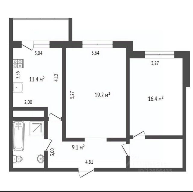 Общая площадь: 53.70 м.кв., Жилая площадь: 31.00 м.кв., Площадь кухни: 16.00 м.кв., Кухня-гостинная