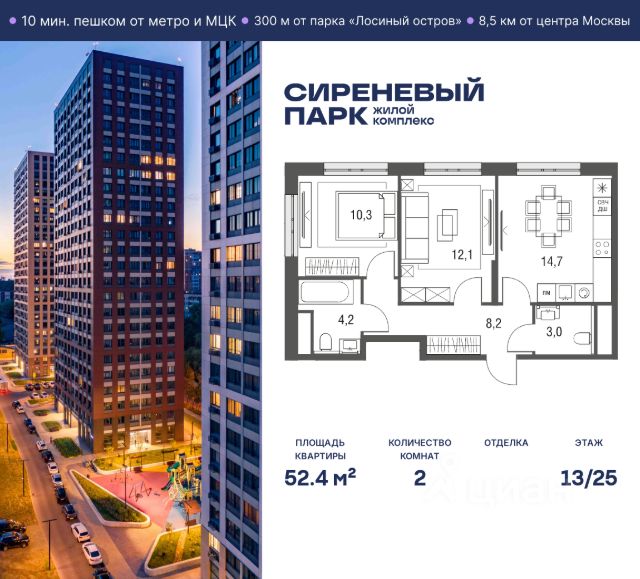 Продаётся просторная 2-комнатная квартира общей площадью 38.7 м² на 18 этаже в новом жилом комплексе "Сиреневый парк", расположенном в Восточном административном округе Москвы на улице Тагильская. Всего 10 минут ходьбы от станции метро "Бульвар Рокоссовского" и одноимённой платформы МЦК. Высококачественное монолитное строительство гарантирует сохранение тепла в доме, а наличие квартир с предчистовой и чистовой отделкой позволяет вам сэкономить время и сразу же переехать в свое жилье после покупки. Благодаря разнообразию планировок вы сможете выбрать идеальный вариант, соответствующий вашим предпочтениям и образу жизни. Предлагаются квартиры: - с просторными кухнями-гостиными, - с нишами для хранения вещей и отдельными гардеробными, - мастер-спальни с собственными санузлами, - большие комнаты с высокими потолками (2,9 м) и с увеличенными безопасными окнами (1,95 м) , которые наполнят ваш дом естественным светом; - с чистовой отделкой по двум дизайн-проектам на выбор; - с остекленными лоджиями и панорамными видами на лес. Каждая деталь в этом доме создана для вашего комфорта: - безбарьерная среда, - бесшумные скоростные лифты, - машиноместа в отапливаемом подземном паркинге и кладовые на -1 этаже с доступом из лифта, - развитая инфраструктура с супермаркетами, кафе, фитнес-клубами, салонами красоты и частным детским садом обеспечивает максимальное удобство жителям. В 300 метрах от ЖК расположен Национальный парк "Лосиный остров". Способы покупки: 100%, Trade-in, Семейная ипотека без наценки, стандартная ипотека. Запишитесь на просмотр в офис продаж и получите свою персональную скидку по акции Назови свою скидку. ЖК "Сиреневый парк" — гармония в деталях, совершенство в каждом моменте. Застройщик проекта - AFI Development.