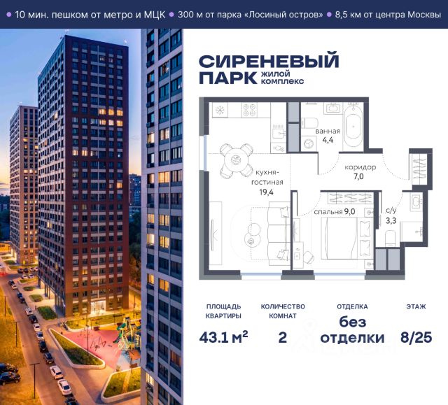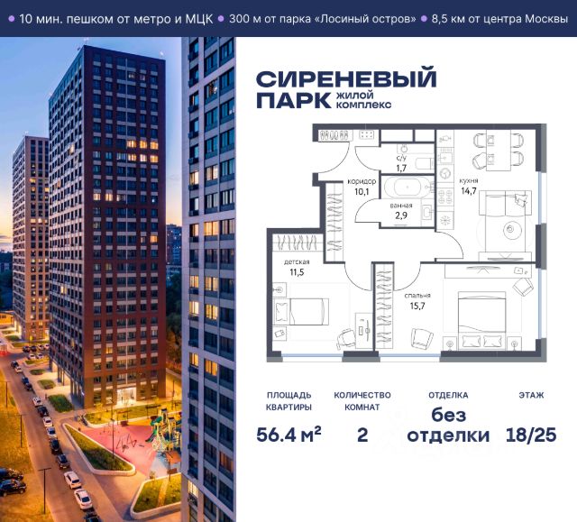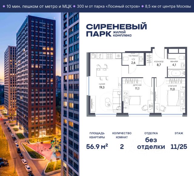 Продаётся просторная 2-комнатная квартира общей площадью 58.8 м² на 4 этаже в новом жилом комплексе "Сиреневый парк", расположенном в Восточном административном округе Москвы на улице Тагильская. Всего 10 минут ходьбы от станции метро "Бульвар Рокоссовского" и одноимённой платформы МЦК. Высококачественное монолитное строительство гарантирует сохранение тепла в доме, а наличие квартир с предчистовой и чистовой отделкой позволяет вам сэкономить время и сразу же переехать в свое жилье после покупки. Благодаря разнообразию планировок вы сможете выбрать идеальный вариант, соответствующий вашим предпочтениям и образу жизни. Предлагаются квартиры: - с просторными кухнями-гостиными, - с нишами для хранения вещей и отдельными гардеробными, - мастер-спальни с собственными санузлами, - большие комнаты с высокими потолками (2,9 м) и с увеличенными безопасными окнами (1,95 м) , которые наполнят ваш дом естественным светом; - с чистовой отделкой по двум дизайн-проектам на выбор; - с остекленными лоджиями и панорамными видами на лес. Каждая деталь в этом доме создана для вашего комфорта: - безбарьерная среда, - бесшумные скоростные лифты, - машиноместа в отапливаемом подземном паркинге и кладовые на -1 этаже с доступом из лифта, - развитая инфраструктура с супермаркетами, кафе, фитнес-клубами, салонами красоты и частным детским садом обеспечивает максимальное удобство жителям. В 300 метрах от ЖК расположен Национальный парк "Лосиный остров". Способы покупки: 100%, Trade-in, Семейная ипотека без наценки, стандартная ипотека. Запишитесь на просмотр в офис продаж и получите свою персональную скидку по акции Назови свою скидку. ЖК "Сиреневый парк" — гармония в деталях, совершенство в каждом моменте. Застройщик проекта - AFI Development.