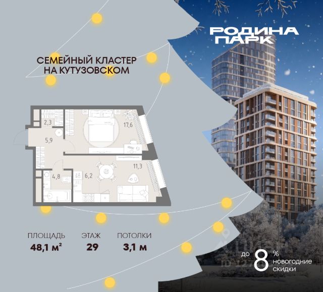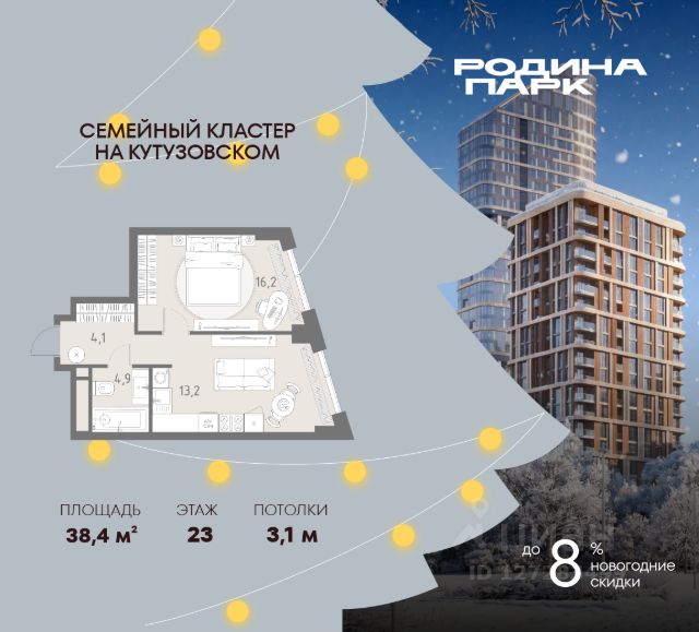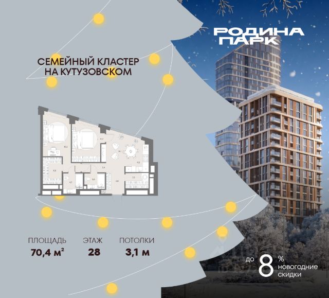 В жилом кластере Родина Парк рядом с природным заказником Долина реки Сетунь продаётся 2-комнатная квартира. Продуманная европланировка, которую легко зонировать под ваши запросы. Потолки от 3,1 м. "Родина Парк" — премиальный семейный кластер с образовательным медиакластером, строящийся на западе Москвы в окружении природного заповедника "Долина реки Сетуни". • Скидки недели на избранный пул лотов • Рассрочка 0% на выгодных условиях до 2 лет • Семейная ипотека, подбор комбо-вариантов ипотечных программ прямо в офисе продаж • Скидки 8% при 100% оплате или ипотеке. ЛОКАЦИЯ: 8 минут пешком до станции БКЛ "Давыдково". 12 минут на автомобиле до Нового Арбата. Удобные выезды на Кутузовский проспект, Аминьевское шоссе. ИНФРАСТРУКТУРА И СЕРВИСЫ ДЛЯ ЖИТЕЛЕЙ - Уникальная экосистема для развития, здоровья и творчества на территории 3,5 Га: - Первый в России образовательный медиакластер (с участием Русской медиагруппы) для творческого развития детей и взрослых с возможностью получить востребованную профессию в сфере шоу-бизнеса. - Инфраструктура и сервисы для семей с детьми на территории жилого кластера (частный детский сад, детские игровые пространства, творческие студии для занятий музыкой и танцами, безопасная и комфортная среда для детей и родителей), событийно-культурная площадка для проведения семейного досуга); - Здоровая среда (биохакинг-центр, фитнес-зал и спортивная инфраструктура во дворе, медитационные пространства, инженерные решения для освещения, свежего воздуха и очистки воды, сервисы красоты и поддержания активного долголетия); - Сервисы заботы (инфраструктура комфорта - подземный паркинг, кладовые, колясочные, консьерж- сервис, умный дом, мобильное приложение, профессиональная управляющая компания, сервисы охраны и обеспечение абсолютной безопасности) - Комьюнити резидентов (социальные пространства для дружеского и делового общения - летний атриум с уличным кинотеатром, зоны отдыха, кафе и рестораны, комьюнити-сервис с культурно- событийной программой в медиакластере); - Модуль благосостояния (комфортные пространства для работы и саморазвития - коворкинги и переговорные). ИНФРАСТРУКТУРА РАЙОНА: Насыщенная образовательная среда: филиалы МГИМО, МГУ, МГТУ, Сколково. Топовые школы: 6 лучших частных школ Москвы и области (Forbes) в 10 минутах езды. Природное окружение для пеших прогулок, спорта и отдыха. "Родина Парк" — это место, где растут и дети, и ваши возможности. Экосистема, где всё подчинено развитию — физически, профессионально, творчески.