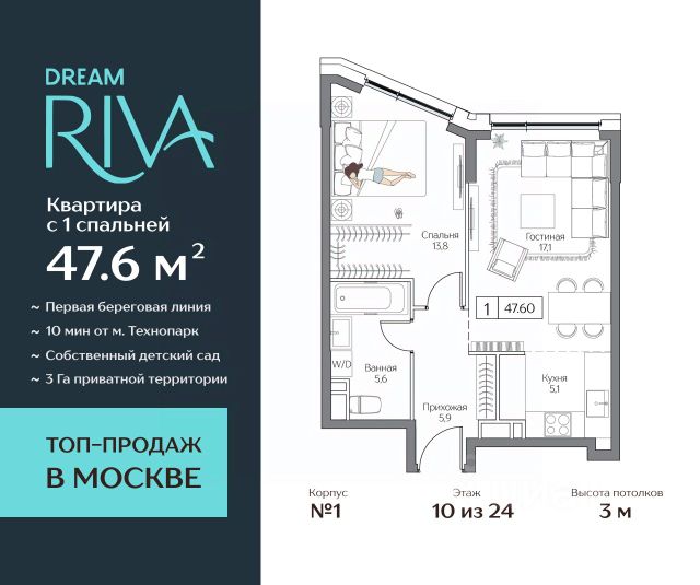 46.6 кв.м, 2 комнат, 2 этаж. Высота потолков 3 м. Квартира без отделки — возможность реализовать собственный дизайн-проект. Предусмотрены места для кондиционеров. ЛОКАЦИЯ И ТРАНСПОРТ • 15 минут на авто до Садового кольца, • 30 минут до Москва-Сити и Кремля. Метро "Технопарк" в пешей доступности. В перспективе — станция "Остров мечты". ИНФРАСТРУКТУРА КВАРТАЛА • 3 га приватного двор-парка с зонами для спорта, йоги и отдыха • Благоустроенная набережная с гастропроменадом • Клубные лобби: гостиная с камином, детское игровое кафе, lounge-бар • SPA-центр и фитнес • Государственные детский сад и школа на территории • Открытая и подземная парковки ПРИВИЛЕГИИ РЕЗИДЕНТОВ • Приоритетный доступ к инфраструктуре города-курорта: • Пляжный клуб Dream Beach Club, • Яхт-клуб Dream Marine Resort, • Вейк-клуб, • Парк развлечений. • 44 га парков для прогулок и спорта вокруг квартала. БЕЗОПАСНОСТЬ И КОМФОРТ • Закрытая территория, • Охрана, • Видеонаблюдение, • Консьерж-сервис. • Современные инженерные системы и технологии умного дома. ЗАСТРОЙЩИК Regions Development — более 15 лет на рынке. Портфолио: парк "Остров мечты", колесо обозрения "Солнце Москвы", ЖК Dream Towers. Звоните, чтобы договориться о просмотре! Продаётся 2-квартира на 2 этаже 26-этажного дома (AQUA корп.3 корпус). Общая площадь: 46.6 кв.м. Высота потолков от 3.15 м.