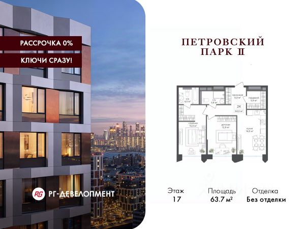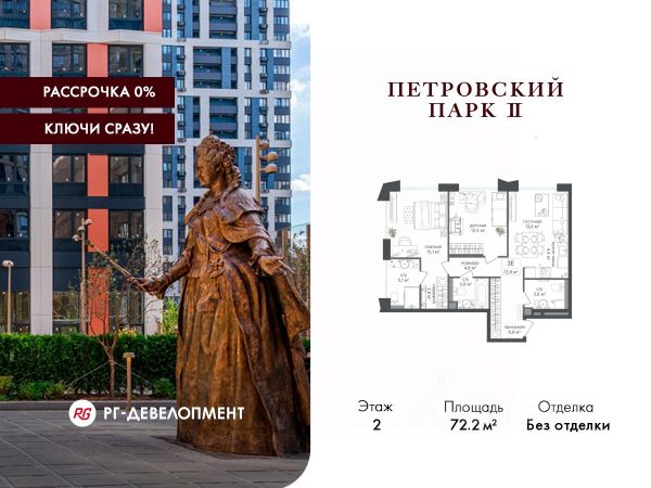Рассрочка 0%. Первый платёж 30%, второй - не позднее 31.12.2026 г. Продаётся 2-комнатная квартира 73.1 кв.м. в ЖК "Петровский парк II" на 21-м этаже 21 этажного дома. ЖК "Петровский парк II" — жилой комплекс в Савёловском районе, где город ощущается иначе. Здесь история и масштаб Москвы не давят, а задают фон для спокойной, уверенной жизни рядом с центром. Это место, где статус читается не в громких формулировках, а в окружении, архитектуре и ощущении пространства. Коротко о важном: • Район с глубоким историческим контекстом и парковым окружением; • 5 минут пешком до метро "Динамо", рядом с деловой и культурной жизнью города; • Редкое сочетание: энергия мегаполиса и тишина зелёных аллей; • Архитектура от бюро Синтаксис с пластикой форм и индивидуальным характером фасадов; • Панорамные виды на город и зелёные массивы Петровского и Тимирязевского парков; • Закрытый двор без машин, вдохновлённый эстетикой дворцовых садов; • Просторные входные группы с высокими потолками и выверенной, респектабельной эстетикой; • Частный детский сад во дворе; • Подземная парковка и кладовые; • РГ-Девелопмент - ТОП-20 крупнейших застройщиков Москвы. Расположение комплекса формирует особое ощущение свободы выбора. Утром - прогулка по тенистым аллеям Петровского парка, днём - работа и встречи в деловых кластерах поблизости, вечером - культурные события, рестораны и городские пространства в нескольких минутах пути. Здесь расстояния измеряются не километрами, а шагами от дома. Архитектура "Петровского парка II" задумана как современный архитектурный акцент района и одновременно как уважительный диалог с исторической средой. Асимметричные объёмы, волнообразные элементы и игра света и тени создают выразительный, но сдержанный силуэт. Архитектура наполнена воздухом и визуальным ритмом, оставаясь спокойной и уверенной. Общественные пространства продолжают эту логику. Два парадных вестибюля с высокими потолками и благородной цветовой палитрой воспринимаются как пространства, где хочется замедлиться: встретить гостей, перевести дыхание после дня или просто почувствовать уровень среды, в которой вы живёте. Внутренний двор комплекса - это отдельный мир, закрытый от машин и городского шума. Продуманное благоустройство территорий отсылает к регулярным дворцовым садам: геометрия аллей, зелёные "кабинеты", цветники и камерные зоны отдыха создают разные сценарии для повседневной жизни. Здесь органично соседствуют детские игровые пространства, спортивные зоны и тихие места для отдыха. На территории комплекса расположены магазины, кафе и рестораны, а также частный детский сад, встроенный в общую структуру двора. Подземная парковка и кладовые поддерживают ощущение порядка и цельности пространства.