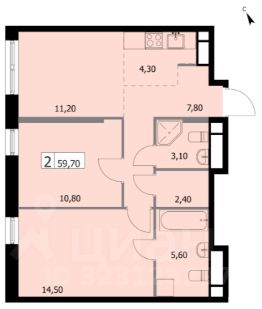 Квартира находится на 4 этаже, имеет интересную планировку: Общая площадь 45,7 м2+ лоджия 7.7 м2, кухня-гостиная 15 кв.м. с выходом на лоджию, комната 16.0 м2 с выходом на лоджию, гардеробная 3.7 м2, совмещенный санузел 4.0 м2 и просторная прихожая 5.4 м2.