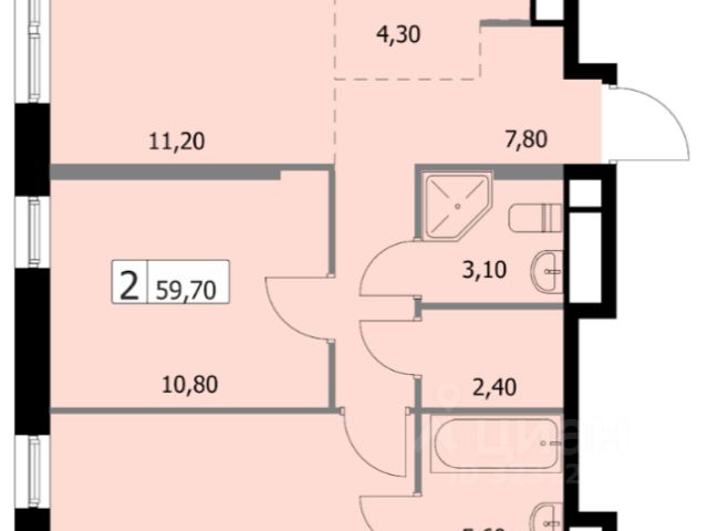 - В Ванной комнате: акриловая ванна, душевая система, гигиенический душ, смесители, стеклянная шторка на ванну, полотенцесушило, зеркало с подсветкой, тумба со встроенной раковиной, подвесной унитаз, дверки над коробом с инсталляцией, проточный обогреватель, стиральная машина,