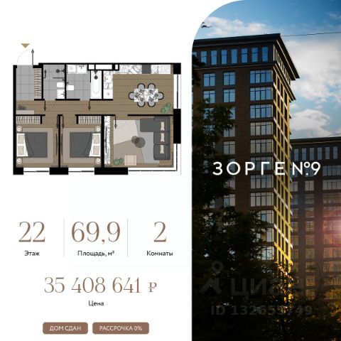 Продаётся 2-комнатная квартира 66.30 м² в жилом комплексе Ракурс. Квартиру отличают панорамное остекление, улучшенная шумо и воздухоизоляция. Дом сдаётся в 1 квартале 2028 года, продажи проходят через эскроусчета. Подземный паркинг, коворкинг, закрытая благоустроенная территория с фонтаном и артобъектами. Гибкие условия покупки. Rakurs — место, в котором жизнь приглашает к исследованию. Концепция проекта knowledge-centric среда, которая выражается здесь в образе жизни: • атмосфере интеллектуальной среды, • доступности образования, • фокусе на возможности для развития. RAKURS разместился в районе науки и окружен исследовательскими институтами и образовательными учреждениями, при этом на территории построена своя школа с уникальной концепцией. Расположенный на пересечении улиц Маршала Бирюзова и Берзарина, недалеко от станций метро "Октябрьское поле" и "Зорге", дом угождает транспортной доступностью автомобилистам и пешеходам. Инфраструктура же района создана с заботой о людях: здесь много парков, кафе и других уютных мест для отдыха. В состав комплекса входят три башни высотой 18, 26 и 44 этажа, каждая из которых имеет свой запоминающийся силуэт. Между собой башни связаны среднеэтажными строениями с индивидуальными фасадами. Композиция и пластика корпусов, а также панорамное остекление башен обеспечивают квартиры максимальным количеством дневного света и выигрышными видами на центр города и Москву-Сити. Упор на функциональность не лишает проект его уникального образа — все башни имеют неординарную форму с харизматичными уступами и консолями. Rakurs предлагает широкий выбор уникальных вариантов жилья — от студий до эксклюзивных квартир с приватными террасами. Проект спроектирован с фокусом на биофильность и функциональность. Во дворах Rakurs можно насладиться завтраком на террасе кафе, игрой с детьми или спортом на свежем воздухе. В Rakurs cвой комьюнити-центр - многофункциональное пространство для работы, отдыха, общения и развития. Одна из важнейших частей центра — частная библиотека с лаундж-зоной. Книжный фонд отбирается для нее кураторской командой, а дизайн пространства сделан так, чтобы жители могли почувствовать умиротворяющую атмосферу библиотечного зала. Идея knowledge-centric среды поддерживается здесь и книжным магазином с лекторием, а также зонами для самостоятельной учебы и занятий с преподавателями.
