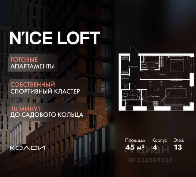 N'ICE LOFT — готовый комплекс апартаментов с собственным спортивным кластером в 10 минутах от Садового кольца. Комплекс апартаментов бизнес-класса N'ICE LOFT, девелопером которого выступила компания КОЛДИ, представляет собой знаковое жилое пространство, на территории которого органично объединены высококачественная инфраструктура для комфортной жизни и полноценный спортивный кластер. N'ICE LOFT — новая спортивная доминанта Москвы, где для жителей и их гостей предусмотрено более 20 000 м², созданных специально для тренировок, игр, восстановления и оздоровления. Автором выразительной городской эстетики выступило архитектурное бюро APEX. Строгие силуэты фасадов эффектно возвышаются над благоустроенным окружением, а световые блики элегантно подчеркивают структурное фасадное остекление. Сердце проекта — физкультурно-оздоровительный комплекс с двумя ледовыми аренами формата НХЛ — профессиональными площадками. Помимо спортивных арен на территории N'ICE LOFT предусмотрено пять многофункциональных залов, где каждый сможет реализовать свой спортивный потенциал. Для тех, кто предпочитает тренировки и прогулки на свежем воздухе, создан спортивный парк общей площадью 6 300 м² с воркаут-зонами, игровыми площадками и уединенными пространствами для отдыха. Также внутри квартала проложена километровая беговая дорожка, которая доступна к использованию в любое время года. Особое внимание архитекторы уделили входной группе — просторное авторское лобби с потолками до 9 метров с использованием природных элементов. Резиденты и их гости смогут насладиться садом, не покидая пределы дома. Территория апарт-комплекса N'ICE LOFT соответствует современным стандартам безопасности: инновационная система видеонаблюдения, охраняемый подземный паркинг и круглосуточный консьерж-сервис. Преимущества N'ICE LOFT: Готовый комплекс с собственным спортивным кластером в 10 минутах от Садового кольца Современная архитектура с выразительными контрастными фасадами Спортивная инфраструктура 20 000 м²: 2 ледовые арены формата НХЛ, 5 многофункциональных залов, беговая дорожка 1 км Спортивный парк 6 300 м² с зонами для разных видов активностей Более 10 видов спорта в одном кластере Апартаменты с панорамными окнами и потолками до 5 метров Видовые лоты с террасами и патио Авторское лобби с потолками до 9 метров Консьерж-сервис 24/7 Охраняемый подземный паркинг Продам 2-комнатную квартиру в стиле loft в Москве.