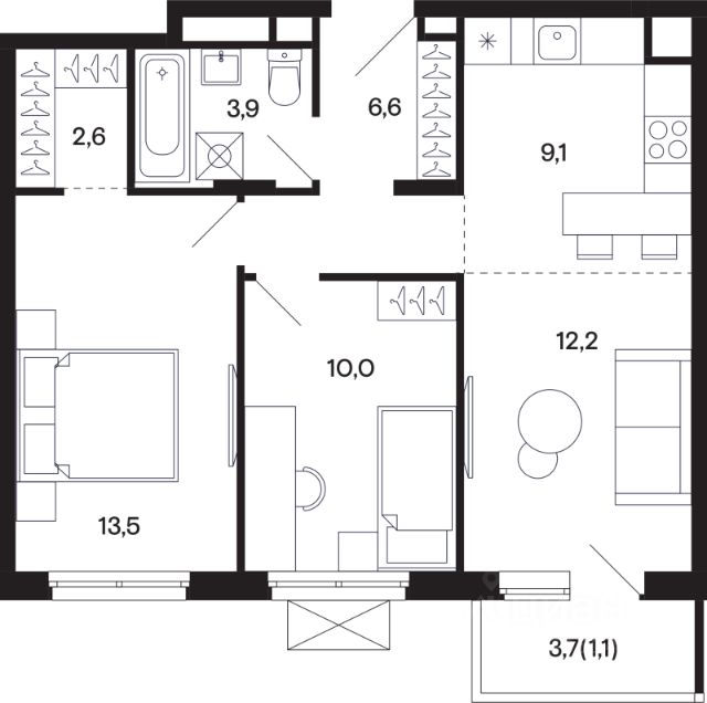 Квартира расположена на первом этаже блочного дома 1967 года постройки. Общая площадь составляет 43,8 кв. м, из которых 20 кв. м — жилая площадь, 17 кв. м — кухня. Квартира евроремонта, комнаты изолированы, окна выходят на улицу. Совмещённый санузел.