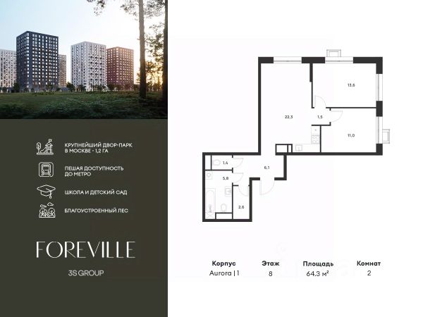 В жилом комплексе, расположенном по соседству с ландшафтным парком "Южное Бутово", продается 2-комнатная квартира площадью 59.50 кв. м. с отделкой. Квартира расположена на 10 этаже 1 корпуса в жилом квартале комфорт-класса "Новые Смыслы" (ГК Unikey/Юникей). Доступная и удобная локация: - 10 минут ходьбы до станции метро "Потапово". - 25 минут ходьбы до станции метро "Бунинская аллея". - 15 минут на авто до Калужского шоссе. - 20 минут на авто до МКАД. - 30 минут на машине до аэропортов "Внуково" и "Остафьево". Продуманный архитектурный проект: - Разноуровневые секции с эстетичные башнями и контрастными цветовыми сочетаниями, напоминающими башни в Сити. - Сказочные виды из окон на современный район столицы. - Авторские планировки с потолками в 3 метра, просторными кухнями-гостиными и мастер-спальнями. - Комфортные бесплатные общественные пространства. - Подземный паркинг с прямым доступом на лифте. - Настоящий лес с живописными пейзажами и прудом прямо во дворе. Расположение Комплекс "Новые Смыслы" расположится в благоприятном районе Новой Москвы - Коммунарка. Зеленое окружение, богатая инфраструктура развивающегося района - все это сформирует особое пространство для комфортной жизни, наполненной смыслом. 10 минут на велосипеде - и вы в ландшафтном парке "Южное Бутово" или сквере у Потаповских прудов. Чуть дальше расположен Бутовский лесопарк. В окружении "Новых Смыслов" вы найдете все необходимые социальные объекты. В двух шагах от дома находится 5 школ, более десятка детских садов, секции для занятий малышей и подростков, частные клиники, супермаркеты, рестораны, студии красоты и фитнес-центры. За 12 минут на авто вы доберетесь до ледовой арены, комплекса "Спорт Станция" и спа-центра "Termoland". Внутренняя инфраструктура Для жителей "Новых Смыслов" будут созданы бесплатные общественные пространства: - Деловая гостиная с эстетичным коворкингом и переговорными. - Гостиная для души и тела, включающая фитнес-зону с тренажерами и пространства для стретчинга, йоги и медитаций. - Гостиная детства, где дети будут играть и развиваться под присмотром тьютора. - Кино-гостиная - кинотеатр на крыше одного из домов, предлагающий разнообразную программу. - Прачечная, работающая только для жильцов. Вместе с корпусами комплекса на территории запланировано строительство детского сада. На первых этажах корпусов откроются кофейни, пекарни, сервисы быта и пункты доставки. Благоустройство Чтобы отдохнуть от суеты города, достаточно выйти во двор: здесь раскинулся настоящий лес с живописными пейзажами. В тени деревьев жителей ждут пруд с мостиком и беседкой на берегу, тихие прогулочные аллеи, спортивная площадка и зоны для занятий йогой и бадминтоном на свежем воздухе. Юных жителей порадуют современные детские площадки, жукарий и специальное пространство для подвижных игр. Безопасность на территории гарантирована: двор огорожен от машин и оснащен камерами видеонаблюдения. Купить 2-комнатную квартиру Варшавское шоссе.