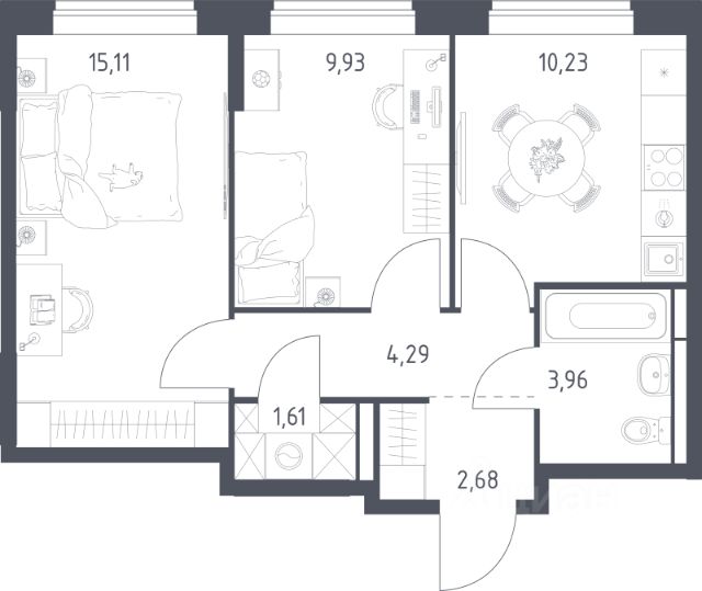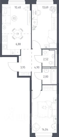 Продаётся 2-комнатная квартира в сданном доме (Ново-Молоковский, 1 (Корпус 13)), срок сдачи: IV-кв. 2024, общей площадью 42.7 кв.м., на 7 этаже. Расположение, транспортная доступность Жилой комплекс "Ново-Молоково" располагается в 11 км от МКАД: половина пути проходит по Каширскому шоссе, другая половина - по Володарскому. Новые кварталы построены в живописном пригороде, между поймой Москвы-реки и лесным массивом, на краю древнего села Молоково, о котором впервые упоминается в рукописях начала второго тысячелетия. Недалеко находится город Видное, по Каширскому шоссе можно проехать до аэропорта Домодедово, есть дорога от села Молоково до Новорязанского шоссе. Своим ходом добираться из Москвы очень удобно: на маршрутном такси или автобусе 367 от метро "Домодедовская" до остановки "Ново-Молоково" и далее пять минут пешком до дома. Здесь же останавливается автобус 29, прибывающий из города Видное. Инфраструктура Первые этажи домов занимают нежилые помещения, в которых расположены объекты инфраструктуры. Во втором корпусе работает минимаркет "Фасоль", пекарня, салон красоты, цветочная лавка, строительный магазин, товары для здоровья "Сибирское здоровье". В корпусе в 3 есть отделение полиции и многофункциональный центр. В корпусе 7 открыт культурный центр RDI, фитнес-клуб, супермаркет "Фасоль", кафе "Пятница". Здесь же работают аптека, магазины "Кот&Пес", "Хмельной барон" и "Карапуз". В корпусе 8 принимает врач Видновской больницы, в корпусе 9 есть детский сад "Вундеркинд", офисный центр, стоматологическая клиника, развлекательный клуб "Шерлок", языковые курсы. Планируется строительство школы на 800 учеников, еще одного детского сада на 260 мест с бассейном, торгово-развлекательного центра. В пешей досягаемости расположен супермаркет "Дикси" и магазин "Парное мясо". В соседней деревне Орлово находится конноспортивный клуб "Левадия", а в деревне Остров - рыболовная усадьба "Остров" и клуб семейного отдыха. Для удобства жителей застройщик воплотил в жизнь собственное ноу-хау: Службу городских сервисов и единый портал для жителей комплекса, где можно связаться с коммунальными службами, получить консультации сервисных компаний, воспользоваться услугами и оплатить их или просто пообщаться на форуме. Надежность застройщика Девелопер ЖК "Ново-Молоково" - компания RDI, которая основана в 2008 году и входит в состав RDI Group, инвестиционного холдинга и одного из крупнейших землевладельцев Московского региона. Главные приоритеты RDI при реализации проектов - комплексное освоение территорий и строительство домов с уникальной архитектурой и по доступным ценам. Сотрудничество с американскими архитектурными бюро Perkins Eastman и Bar architects, экспериментальной архитектурной лабораторией POLYGON и коллективом архитекторов "Алексей Бавыкин и партнеры" позволяет проектировать комфортабельные жилые пространства. Каждый проект уникален и заслуживает внимания. Современный подход отличает компанию и в организации инфраструктуры с информационными порталами Службы г Купить 2-комнатную квартиру Володарское шоссе.