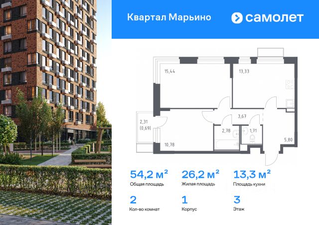 Предлагается 2-комнатная квартира комфорт-класса 51,71 кв.м в корпусе 2 на 7 этаже, в ЖК "Квартал Марьино" Квартира без отделки. Доступность опции "отделка" и возможность комплектации мебелью и декором уточняйте у застройщика. Приобрести квартиру возможно по специальным акциям от застройщика, с текущими условиями акций можно ознакомиться в блоке "Акций". Цена динамическая и может отличаться, уточняйте актуальность у застройщика. "Квартал Марьино" — проект в Новой Москве, в 18 км от МКАД, вблизи Валуевского лесопарка. Здесь будет все, чтобы получать удовольствие от жизни: приватные дворы-парки без машин, инфраструктура в шаговой доступности и общественные пространства для разнообразных занятий на свежем воздухе. До станции метро "Филатов луг" — 15 минут на машине по Филимонковскому шоссе. Живописные места для отдыха на природе — на расстоянии 2-5 км от дома. На территории будут построены 6 детских садов, 4 школы, поликлиника и спортивный комплекс, а также кафе, магазины и салоны красоты на первых этажах жилых домов. В закрытых дворах-парках предусмотрены игровые площадки, лужайки для пикников и йоги. Пространства для спокойного отдыха будут огорожены живыми изгородями. Дизайн-код проекта — "Полевые цветы". Он прослеживается в каждой детали — от натуральных оттенков фасадов до элементов благоустройства в эко-стиле.