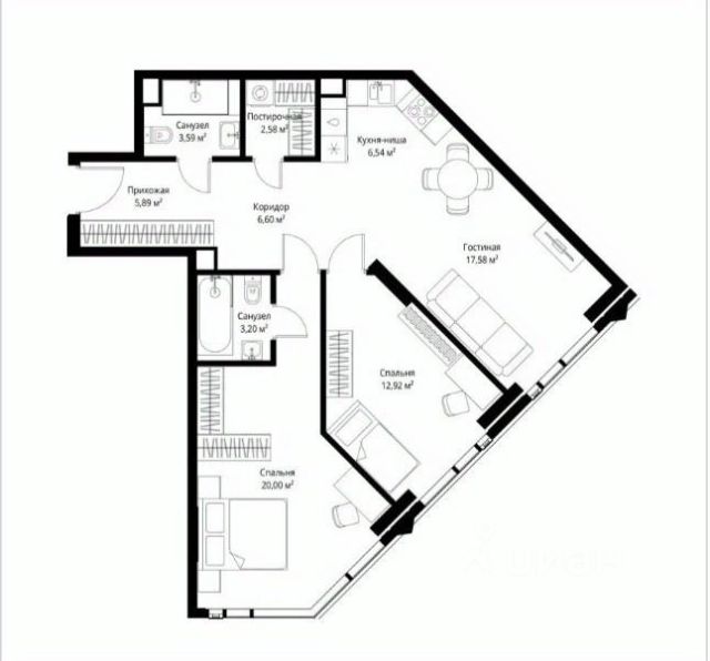 ПРОСТОРНАЯ КВАРТИРА В ПРЕСТИЖНОМ ЖК JOIS Цена ниже,чем у застройщика! Представляем вашему вниманию квартиру 3-евро формата площадью 79.55 кв.м.на 44 этаже с прекрасным видом на город, расположенную в современном жилом комплексе премиум-класса JOIS в корпусе Anna. Проект расположен в новом центре притяжения, перспективном районе между деловым центром города и природными зонами западной части столицы. ХАРАКТЕРИСТИКИ КВАРТИРЫ: • Общая площадь: 79.55 м² • Количество комнат: 2 • Кухня-гостиная 17.58 кв.м.,кухня-ниша 6.54 кв.м, 2 спальни (12.92 кв.м+20 кв.м),2 санузла (3.2 кв.м.+2.58 кв.м.),постирочная 2.58 кв.м,коридор 6.6 кв.м,прихожая 5.89 кв.м) • Высота потолков: 3.15 м • Предчистовая отделка white box. ГЛАВНЫЕ ПРЕИМУЩЕСТВА: • Локация в престижном районе города • Собственная приватная инфраструктура • Панорамные окна с видом на город • Видеонаблюдение • Консьерж-сервис • Подземный паркинг • Зоны отдыха для жильцов:фитнес-центр с панорамным бассейном и джакузи под открытым небом,йога-центр и SPA-зоны. ТРАНСПОРТНАЯ ДОСТУПНОСТЬ: 7 мин до ст.МЦК Хорошево 17 мин до ст.м.Народное ополчение 10 мин до ст.м.Звенигородская с 2027 года О ЖИЛОМ КОМПЛЕКСЕ: Jois это не просто жилой комплекс, а настоящее произведение архитектурного искусства. Просторные лобби, современные лифты и продуманная планировка территории создают комфортную среду для жизни. О ДОКУМЕНТАХ: 1 взрослый собственник,материнский капитал не использовался,прямая сделка. 2-комнатная квартира на проезде 3-й Силикатный в Москве.