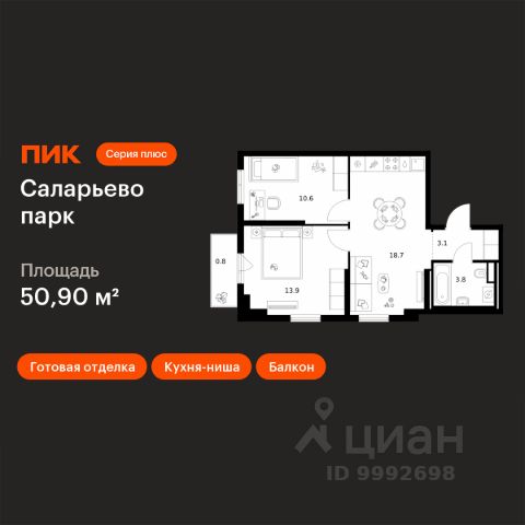 Продаётся 2-комн. квартира площадью 48,3 кв.м на 14 этаже 16 этажного дома (Корпус 82.5, Секция 5) проекта ПИК Саларьево парк. Светлый просторный подъезд на уровне земли, функциональная планировка, большие окна, предчистовая отделка. Жилой район "Саларьево парк" расположен в Новой Москве, в четырёх километрах от МКАД по Киевскому шоссе. Две станции метро: "Саларьево" и "Филатов луг", — находятся в пешей доступности от проекта. Дойти до них можно за 5-10 минут. В квартале уже создана качественная среда, где есть абсолютно всё для полноценной жизни, работы и отдыха. Благодаря удобному расположению проекта всё важное будет рядом: детские сады, школы, кафе и рестораны, шопинг в торговых центрах, фитнес и даже аэропорт. Все корпуса в квартале гармонично сочетаются, образуя единую городскую среду. Между собой их объединяет невысокая этажность и натуральная цветовая гамма. Здесь приятно гулять и проводить время на улице всей семьёй. В "Саларьево парке" создана уникальная образовательная среда, включающая в себя шесть школ, рассчитанных на 6 250 учеников. Две из них уже открыты, их посещает 2 300 детей. Также на территории "Саларьево парка" находится 12 детских садов, один из которых с бассейном. Сейчас уже открыты 7 садов. В "Саларьево парке" открыта уникальная игровая площадка — ПлейХаб "Оригами". Здесь есть ручей, горка-труба и рельефные холмы. Взрослые смогут отдохнуть в уютном кафе, пока дети играют. Также на территории проекта есть СпортХаб — большая спортивная зона, разделённая по интересам и возрастам. Здесь можно заниматься разными видами спорта: футболом, баскетболом, волейболом и стритболом. Зимой центральную часть площадки превращают в каток. Во дворах-парках жилого квартала есть места для отдыха, детские и спортивные площадки. На первых этажах домов расположены магазины, кафе и полезные сервисы. Также вблизи проекта есть несколько масштабных торговых центров. До ТЦ "Саларис" пять минут пешком. Артикул 1032814 (Застройщик ООО "Специализированный Застройщик "Тирон")