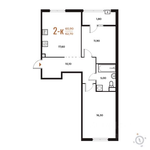 Продаётся 2-комнатная квартира в строящемся доме (Корпус 2), срок сдачи: II-кв. 2026, общей площадью 62.1 кв.м., на 5 этаже. Комплекс отдельно стоящих жилых корпусов с нежилыми помещениями и подземной автостоянкой.