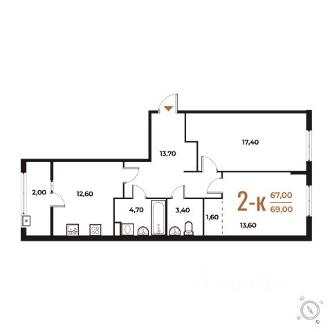 Продаётся 2-комнатная квартира в строящемся доме (Корпус 3), срок сдачи: II-кв. 2026, общей площадью 69.2 кв.м., на 6 этаже. Комплекс отдельно стоящих жилых корпусов с нежилыми помещениями и подземной автостоянкой.