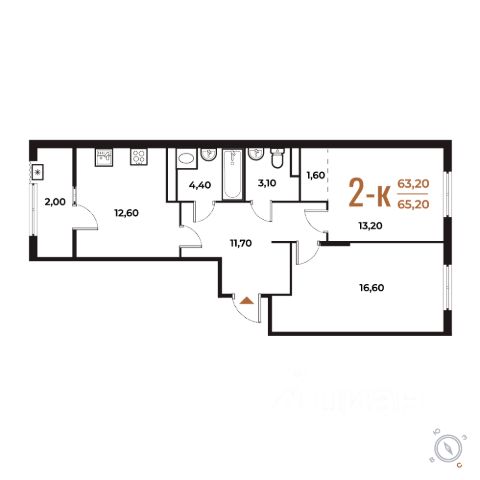 Продаётся 2-комнатная квартира в строящемся доме (Корпус 1), срок сдачи: II-кв. 2026, общей площадью 65.2 кв.м., на 4 этаже. Комплекс отдельно стоящих жилых корпусов с нежилыми помещениями и подземной автостоянкой.