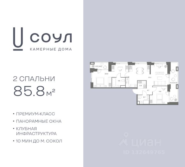 Метро Сокол - 8 минут ходьбы.