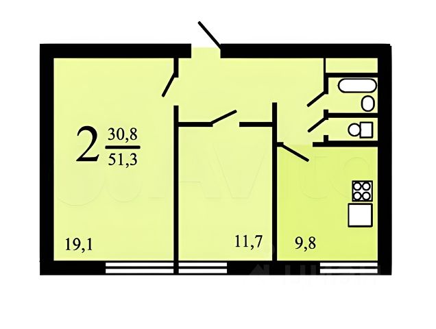 - В квартире 2 балкона, выход из кухни и из меньшей комнаты.