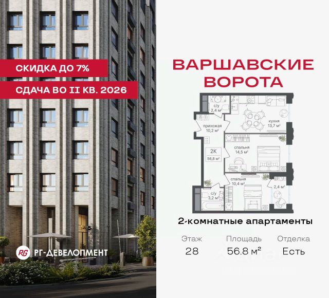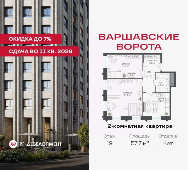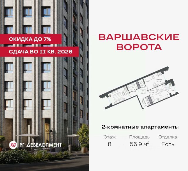 Рассрочка 0% + скидка 5%. Первый взнос 20%, второй — через 6 мес., остаток —до ввода. Продаются 2-комнатные апартаменты 54.3 кв.м. в МФК "Варшавские ворота" на 4-м этаже 9 этажного дома. МФК "Варшавские ворота" — это точка баланса между природой и городом, стилем и функциональностью, жизнью сегодня и устойчивым будущим. Коротко о важном: - 1 минута пешком от м. Аннино; - Удобные выезды на Варшавское шоссе и МКАД; - Высота потолков 2,7 - 3 м; - Закрытый двор-парк; - Школы и детские сады в 10-15 минутах пешком от дома; - Технические лоджии для размещения кондиционеров; - Подземный паркинг; - РГ-Девелопмент — ТОП-20 крупнейших застройщиков Москвы. Проект сочетает в себе современную архитектуру и продуманное благоустройство с уникальным природным окружением. Всего в нескольких минутах от дома — девять парков, каскад прудов и крупнейшие лесопарковые зоны Москвы, создающие ощущение жизни в зеленом оазисе посреди мегаполиса. Архитектурная концепция - стиль Чикаго в Москве. Фасады облицованы вентфасадами под клинкерную плитку. Фасады подчеркивают строгие линии и современный стиль, а входные группы разработаны московским бюро Синтаксис. Вестибюли оформлены с применением керамогранита, декоративной штукатурки и гипсовых панелей, детали из латуни добавляют изысканности. Проект находится в 1 минуте пешком от метро "Аннино", в 12 минутах от станции "Улица Академика Янгеля" и рядом с МЦД-2 "Красный Строитель". Для автомобилистов предусмотрен прямой выезд на Варшавское шоссе и два съезда на МКАД, что позволяет быстро добираться в любую часть города. Среди планировочных решений представлены разнообразные форматы: от функциональных студий до просторных 4-комнатных квартир и апартаментов. Высокие потолки усиливают ощущение простора, а продуманные планировки включают мастер-спальни, гардеробные, объединённые кухни-гостиные и несколько санузлов. Центральное пространство комплекса — закрытый двор без машин. Он разделён на функциональные зоны: детские игровые комплексы, спортивные площадки и уютные места для тихого отдыха. На первых этажах разместятся магазины, кафе и сервисы, что позволит решать повседневные задачи, не покидая территорию комплекса. Для семей с детьми предусмотрен частный детский сад на 50 мест. Подземная парковка и кладовые обеспечат удобство хранения и безопасность автомобилей. Комплекс окружён девятью парками и лесопарками, каждый из которых обладает своей атмосферой. Выйти на пробежку в Аннинском лесопарке, насладиться прогулками по аллеям в Битцевском лесу, спланировать пикник или велопрогулку в Покровском парке, любоваться каскадом Кировоградских прудов. Всего в двух станциях — музей-заповедник "Царицыно" с дворцами, фонтанами и живописными пейзажами. Здесь каждый житель найдёт своё любимое место для отдыха. Южное Чертаново - район развитой инфраструктурой, где сочетаются городские удобства и природное окружение. В шаговой доступности находятся школы, детские сады, спортивные комплексы и торговые центр 2-комнатная квартира в районе Чертаново Южное в Москве.