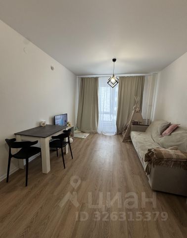 Удобная и функциональная планировка для семьи: изолированная спальная комната с гардеробной и рабочим местом, просторная кухня-гостиная, раздельный с/у.