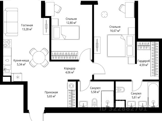 10 минут от Москва-Сити В продаже квартира площадью 81.33 м² без отделки на 6 этаже 46 этажного дома. Квартира расположена в корпусе Leo. JOIS это премиальный жилой комплекс от девелопера MR в районе Хорошёво-Мнёвники. Он включает несколько эффектных небоскрёбов высотой 47-56 этажей, эксклюзивные форматы квартир с панорамным остеклением, подземный двухуровневый паркинг на 239 м/м, собственную приватную инфраструктуру, закрытый ландшафтный парк 2,3 Га с функциональным зонированием и охраняемой территорией. Над проектом работали лучшие команды международных агентств с многолетним опытом: Genpro, S&P, iLight International и другие. Расположение Пешком: - 5 мин. ст. МЦК "Хорошёво"; - 15 мин. ст. м. "Народное ополчение"; - 10 мин. ст. метро "Звенигородская" с 2027 года; - 20 мин. причал "Карамышевский". На автомобиле: - 3 мин. до Звенигородского шоссе; - 5 мин. до ТТК: - 8 мин. до Серебряного бора и Строгинского затона - 10 мин. до ММДЦ "Москва-Сити"; - 40 мин. до аэропорта "Шереметьево"; Благоустройство - собственный ландшафтный парк 2,3 Га; - парк скульптур от Cosmoscow; - консьерж-сервис 24/7; - сервисный лифт и вход; - игровые и спортивные площадки; - коворкинг с библиотекой; - лаунж-зона с камином; - игровые комнаты для детей и клуб для подростков с оборудованием для видеоигр; - спортивная студия для индивидуальных тренировок; - гостиная с мини-кухней; - зоны для выгула собак; - подогрев пешеходных дорожек в зимний период; - автополив зелёных насаждений; - премиальные рестораны, кафе, химчистки, аптеки и супермаркеты. Окружение - 4 парка: Покровское-Стрешнево, Филёвский парк, Серебряный бор и Берёзовая роща; - 15 общеобразовательных заведений, в том числе две школы из самых лучших в Москве: государственная школа "Интеграл" и частная "Хорошкола"; - спортивное сооружение "ВЭБ Арена", домашний стадион ФК ЦСКА; - крупнейший в Европе торгово-развлекательный центр "Авиапарк". 2-комнатная квартира в районе Хорошево-Мневники в Москве.