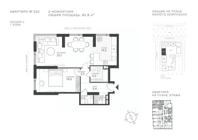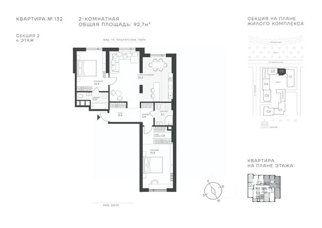 Успейте стать частью уникального проекта премиум-класса на западе Москвы! В продаже квартиры: 1-комнатные от 28,1 м²; 2-комнатные от 61,2 м²; 3-комнатные от 86,6 м²; 4-комнатные от 110,7 м². Первый взнос от 30%! Рассрочка на 2 года без переплат! Крылатское 33 это премиальный жилой комплекс от специализированного застройщика ООО "Сияние". Самый высокий небоскрёб в районе, достигающий отметки в 150 метров и малоэтажный клубный формат высотой от 42 метров на приватной территории площадью 1,4 га. Великолепные виды на излучину Москва-реки, Живописный мост и урбанистический облик города. Эксклюзивные форматы квартир с панорамным остеклением и патио-террасами. Двухуровневый паркинг на 271м/м, премиальные входные группы, ресторан высокой кухни, детский сад и эко-маркет на территории комплекса. Эксклюзивные преимущества: доступ к wellness-центру, коворкингу и клубной гостиной только для резидентов. Над проектом работали именитые российские архитектурные бюро: архитектор проекта бюро "Остоженка", планировочные решения от бюро Александры Федоровой. Расположение Пешком: 5-7 минут - до парка Звезд, Крылатского парка и набережной Москвы-реки; 15 минут - до метро Крылатское Арбатско-Покровской линии; 15 минут - до пристани Крылатская. На автомобиле: 10 минут - до Третьего транспортного кольца; 15 минут - до Садового кольца и Москва- Сити; 20-30 минут - до Аэропорта Внуково; 30-40 минут - до Аэропорта Шереметьево. В 300 метрах от комплекса - удобная транспортная развязка с проспектом Маршала Жукова, обеспечивающая легкий доступ к ключевым магистралям. Благоустройство: Просторная общественная гостиная; Коворкинг с кофе-баром, комфортные переговорные зоны с быстрым wi-fi, зарядными устройствами и библиотекой; Пространство friends lab для организации клубных мероприятий; Wellness-центр с фитнес-залом и массажными кабинетами; Ресторан высокой кухни; Частный детский сад; Детское кафе; Современный детский playhub; Спортивные площадки; Гипоаллергенный сад, безопасные водные пространства, декоративные пруды и сухие фонтаны; Высокоскоростные бесшумные лифты; Разделение зон для резидентов квартала и сервисного обслуживания. Окружение: - парки: Крылатские холмы, природно-исторический парк Москворецкий, Серебряный Бор; - учебные заведения: 5 образовательных комплексов, в которые входят 15 детских садов и 12 школьных корпусов. В удобной транспортной доступности гимназия им. Е. М. Примакова и международный лицей The International School of Moscow; - уникальные спортивные сооружения: гребной канал "Крылатское", легендарный велотрек "Крылатское", "Лата Трэк" для горнолыжников и сноубордистов, ледовый дворец "Крылатское"; - единственный в Москве парк развлечений под открытым небом, включающий более 70 вариантов досуга для любого возраста и времени года. Срок сдачи проекта: 2 квартал 2027 года. Финансирование и эскроу-счет обеспечены банком МКБ. 2-комнатная квартира на улице Крылатская в Москве.
