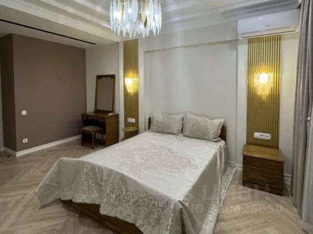 В квартире выполнена премиальная дизайнерская отделка с использованием высококачественных и натуральных материалов, таких как: натуральный мрамор, анодированная бронза, натуральный итальянский шпон, анодированная латунь.
