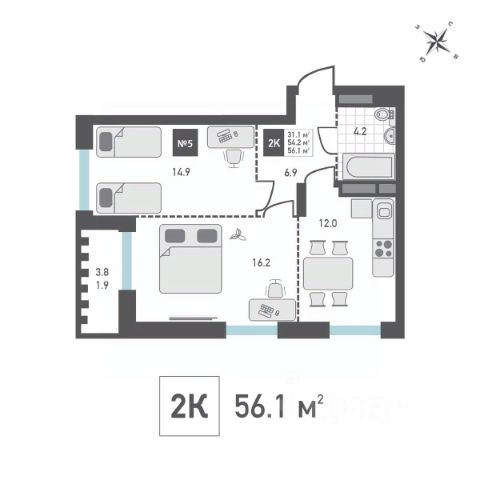 Арт. 90733114 Двухкомнатная квартира в кирпичном доме, р-н Матушкино.