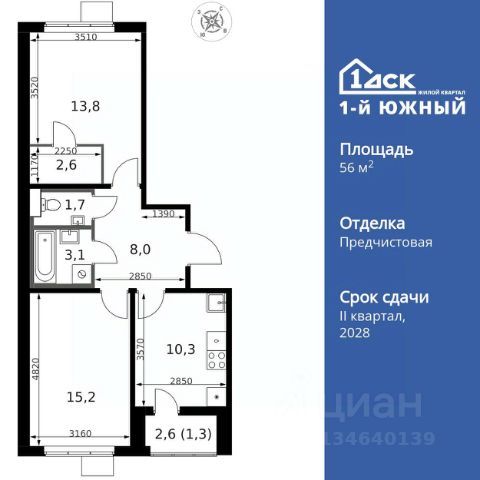 • ✓ В базе объявлений Циан 14 2-комнатных квартир рядом с метро Бирюлёво.