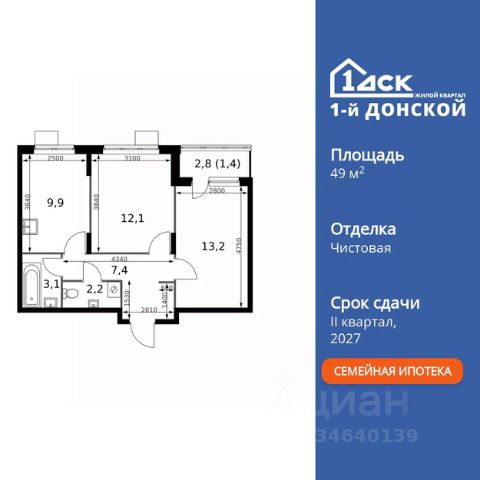 Прямая продажа от застройщика! Жилой Комплекс класса Комфорт Плюс. Продаётся 2-к квартира номер 616 общей площадью 47.8 кв.м. на 9-м этаже 24 этажного здания. Предчистовая отделка. Цена с учётом скидки. Особенности квартиры: - МЦД-5 в пешей доступности - Квартал с собственной набережной - Свои 2 детских сада и школа - Организуем показ в удобное для вас время! - Угловая планировка - больше пространства для ваших идей. - Раздельный санузел - больше удобства для всех членов семьи. - Евроформат - просторное и удобное жилье с отличной планировкой. - Кухня-гостиная - идеальное пространство для встреч с близкими. - Балкон - открытое пространство для отдыха. Квартира с предчистовой отделкой. Вам не придется заниматься черновыми и трудоёмкими работы, а чистовую отделку и дизайн - сделайте на свой вкус. Информация о комплексе: ЖК "1-й Донской" в 7 км от МКАД: гармония городского комфорта и природы. Квартиры на 2-3 стороны света, форма секций и разная этажность создают динамичную архитектуру. Тёплая палитра фасадов и подсветка подчеркивают образ. Рядом - Ермолинский парк, Видновский лесопарк и Жуковский парк. Природа воздействует на все уровни восприятия: от видов до звуков и ароматов. Идеальный баланс для жизни в гармонии с окружающей средой. Транспортная доступность: Комплекс удобно расположен в 7 км от МКАД по трассе М-4 Дон (через Видное). Расстояние до Каширского шоссе составляет 12 км. Добраться до метро и центра Москвы позволяет развитая сеть маршрутов общественного наземного транспорта. Действующая ж/д станция Калинина Павелецкого направления в 15-17 минутах ходьбы (МЦД-5 в 2025-2026 гг). Внутренняя инфраструктура: "1-й Донской": продуманная среда в развивающемся районе. На территории - муниципальные школа и 2 детских сада, поликлиника, торговый центр с площадью для мероприятий. Сеть пешеходных маршрутов ведёт к магазинам и кафе, отделённым от дорог зелёными фито-стенами. Сквозные подъезды с панорамным остеклением и входами с улицы и двора наполнены светом. Всё для комфортной жизни в шаговой доступности, от повседневных нужд до общественных пространств. Квартира с предчистовой отделкой - ваш дизайн без черновых работ