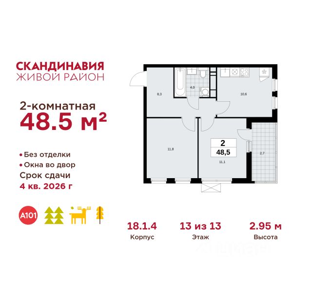 Продается двухкомнатная квартира 239 в новостройке Жилой район "Скандинавия" по адресу Москва, ТиНАО, Новомосковский АО, Сосенское С/П, Коммунарка пос., Скандинавский бульвар, 17, район Коммунарка, Новомосковский административный округ, Москва, 108801. Общая площадь квартиры - 61.40 кв. м., этаж 10 из 16, секция 5. Тип проекта, по которому построен дом - монолит, компания-застройщик - ООО "А101". Стоимость квартиры - 26451734 Р. ПРЕДЛОЖЕНИЯ ОТ ЗАСТРОЙЩИКА В НОЯБРЕ 2025: Ипотека от 13,9 % для всех! На весь срок. "Семейная ипотека" вернулась. Ставка от 3,5 % на весь срок! Без удорожания! Выгодное ипотечное комбо: Ипотека от 2200 р./мес. и от 6 % после рождения ребёнка! Ипотека для всех "Держи пять!" - ставка 5 % на 2 года! *более подробную информацию по скидкам и акциям уточняйте в отделе продаж ЖК "Скандинавия" на границе Бутовского лесопарка (1610 га) - это баланс качественного жилья и сервисов, зелёных пространств для активного и созерцательного отдыха. Выразительная архитектура и цветовая гамма монолитных корпусов комфорт- и бизнес-класса (8-17 этажей) созвучны скандинавским мотивам, органично интегрированы в великолепный природный контекст. Огороженные дворы свободны от машин, в них продуманы места для отдыха и работы на свежем воздухе, озеленение, детские и спортивные площадки. Для прогулок, встреч и районных праздников - площадь Туве Янссон с "сухим" фонтаном, вековыми дубами и единственным в мире памятником писательнице; пешеходный променад 2 км; 3 крупных природных ручья; более 15 км велосипедных и прогулочных дорожек с арт-объектами. Инфраструктура района включает современные школы и детские сады, центр впечатлений, фитнес-клубы, развивающие и творческие центры, магазины, кафе, салоны красоты. На подземных этажах - паркинги и кладовые. Преимущества "Скандинавии": - ст. метро "Потапово" - 100 м от ближайших домов (открыта!) - удобные выезды на трассу Солнцево - Бутово - Варшавское шоссе и ул. Бачуринская - свои школы и детские сады - инфраструктура на первых этажах и рядом с домом - лесопарк, природные водоёмы, прогулочные маршруты Купить 2-комнатную квартиру рядом с метро Бульвар Адмирала Ушакова.