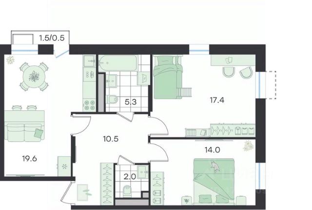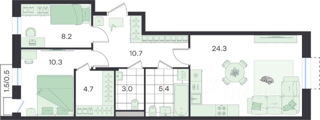Продаётся 2-комнатная квартира в строящемся доме (Театральный, к2), срок сдачи: II-кв. 2026, общей площадью 68.5 кв.м., на 3 этаже. Бутик-квартал "G3 Театральный"
