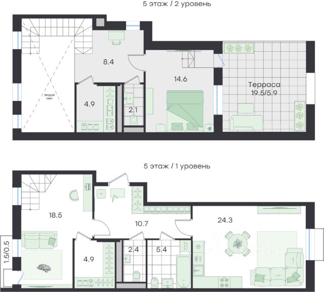 Продаётся 2-комнатная квартира в строящемся доме (Театральный, к2), срок сдачи: II-кв. 2026, общей площадью 102.8 кв.м., на 5 этаже. Бутик-квартал "G3 Театральный"