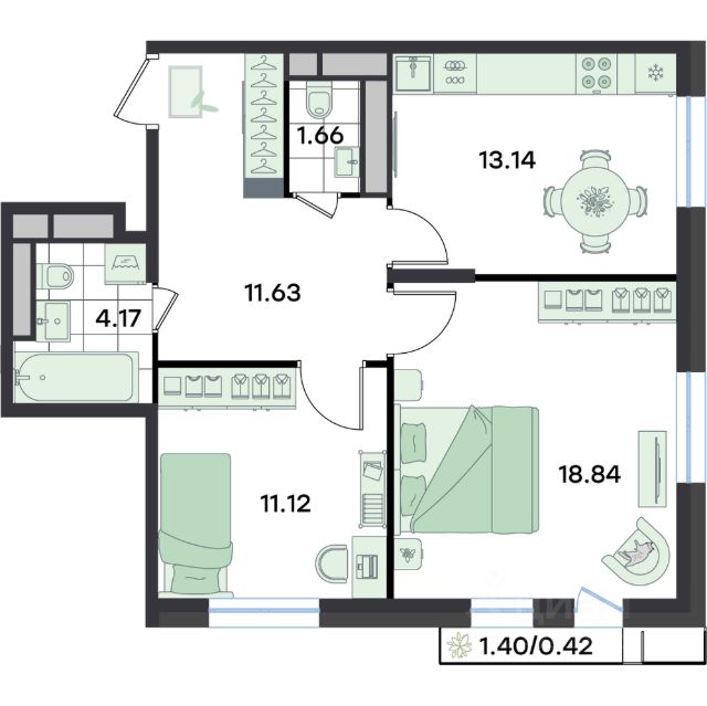 Продаётся 2-комнатная квартира в строящемся доме (Театральный, к2), срок сдачи: II-кв. 2026, общей площадью 55.9 кв.м., на 2 этаже. Бутик-квартал "G3 Театральный"
