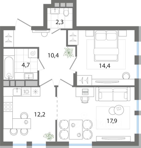 Продаётся 2-комнатная квартира в сданном доме (Театральный, к1), срок сдачи: I-кв. 2025, общей площадью 61.9 кв.м., на 1 этаже. Бутик-квартал "G3 Театральный"