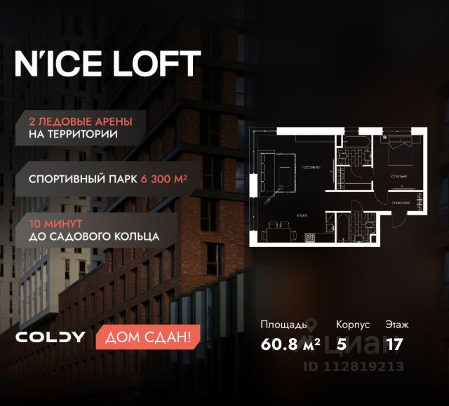 NICE LOFT — готовый жилой квартал с собственным спортивным кластером в 10 минутах от Садового кольца Комплекс апартаментов бизнес-класса NICE LOFT, девелопером которого выступила компания Coldy, представляет собой знаковое жилое пространство, на территории которого органично объединены высококачественная инфраструктура для комфортной жизни и полноценный спортивный кластер. NICE LOFT — новая спортивная доминанта Москвы, где для жителей и их гостей предусмотрено более 20 000 м², созданных специально для тренировок, игр, восстановления и оздоровления. Автором выразительной городской эстетики выступило архитектурное бюро APEX. Строгие силуэты фасадов эффектно возвышаются над благоустроенным окружением, а световые блики элегантно подчеркивают структурное фасадное остекление. Сердце проекта — физкультурно-оздоровительный комплекс с двумя ледовыми аренами формата НХЛ — профессиональными площадками. Помимо спортивных арен на территории NICE LOFT предусмотрено пять многофункциональных залов, где каждый, сможет реализовать свой спортивный потенциал. Для тех, кто предпочитает тренировки и прогулки на свежем воздухе, создан спортивный парк общей площадью 6 300 м² с воркаут-зонами, игровыми площадками и уединенными пространствами для отдыха. Также внутри квартала проложена километровая беговая дорожка, которая доступна к использованию в любое время года. Особое внимание архитекторы уделили входной группе — просторное авторское лобби с потолками до 9 метров с использованием природных элементов. Резиденты и их гости смогут насладиться садом, не покидая пределы дома. Территория апарт-комплекса NICE LOFT соответствует современным стандартам безопасности: инновационная система видеонаблюдения, охраняемый подземный паркинг и круглосуточный консьерж-сервис. Преимущества NICE LOFT: Готовый жилой квартал с собственным спортивным кластером в 10 минутах от Садового кольца Современная архитектура с выразительными контрастными фасадами Спортивная инфраструктура 20 000 м²: 2 ледовые арены формата НХЛ, 5 залов, беговая дорожка 1 км Спортивный парк 6 300 м² с зонами для разных видов активностей Более 10 видов спорта в одном кластере Апартаменты с панорамными окнами и потолками до 5 метров Видовые лоты с террасами и патио Авторское лобби с потолками до 9 метров Консьерж-сервис 24/7 Охраняемый подземный паркинг Продам 2-комнатную квартиру рядом с метро Калитники.