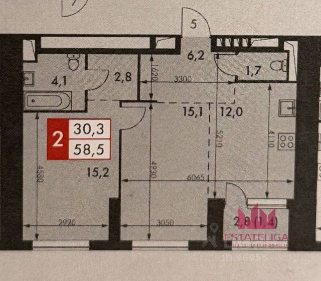 2-комн. квартира в ЖК "Ever" на 4 этаже в 34 этажном здании Корпус 5. Общая площадь: 55.4 кв.м., жилая: 29.5 кв.м. Высота потолков 3.00 м.
